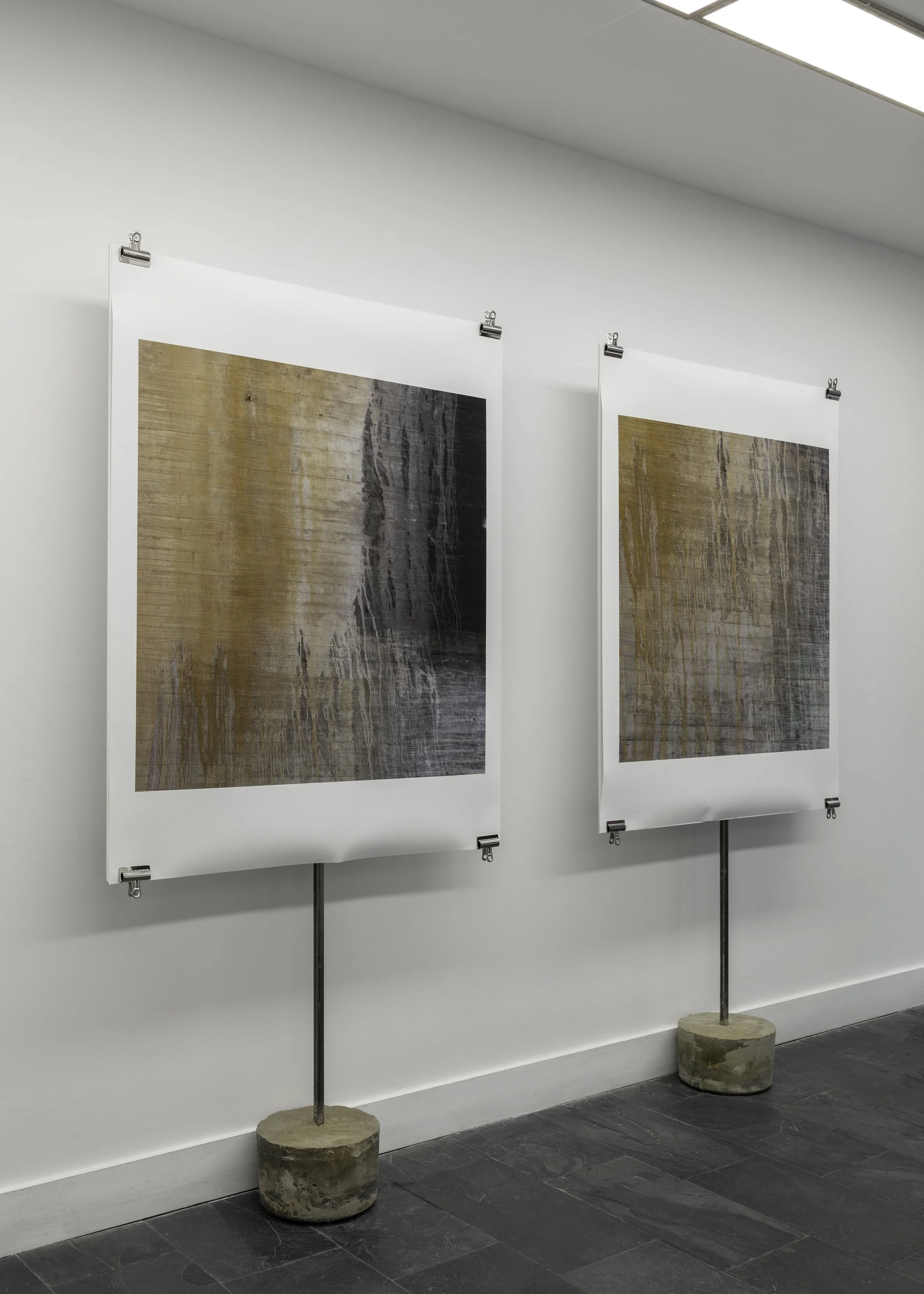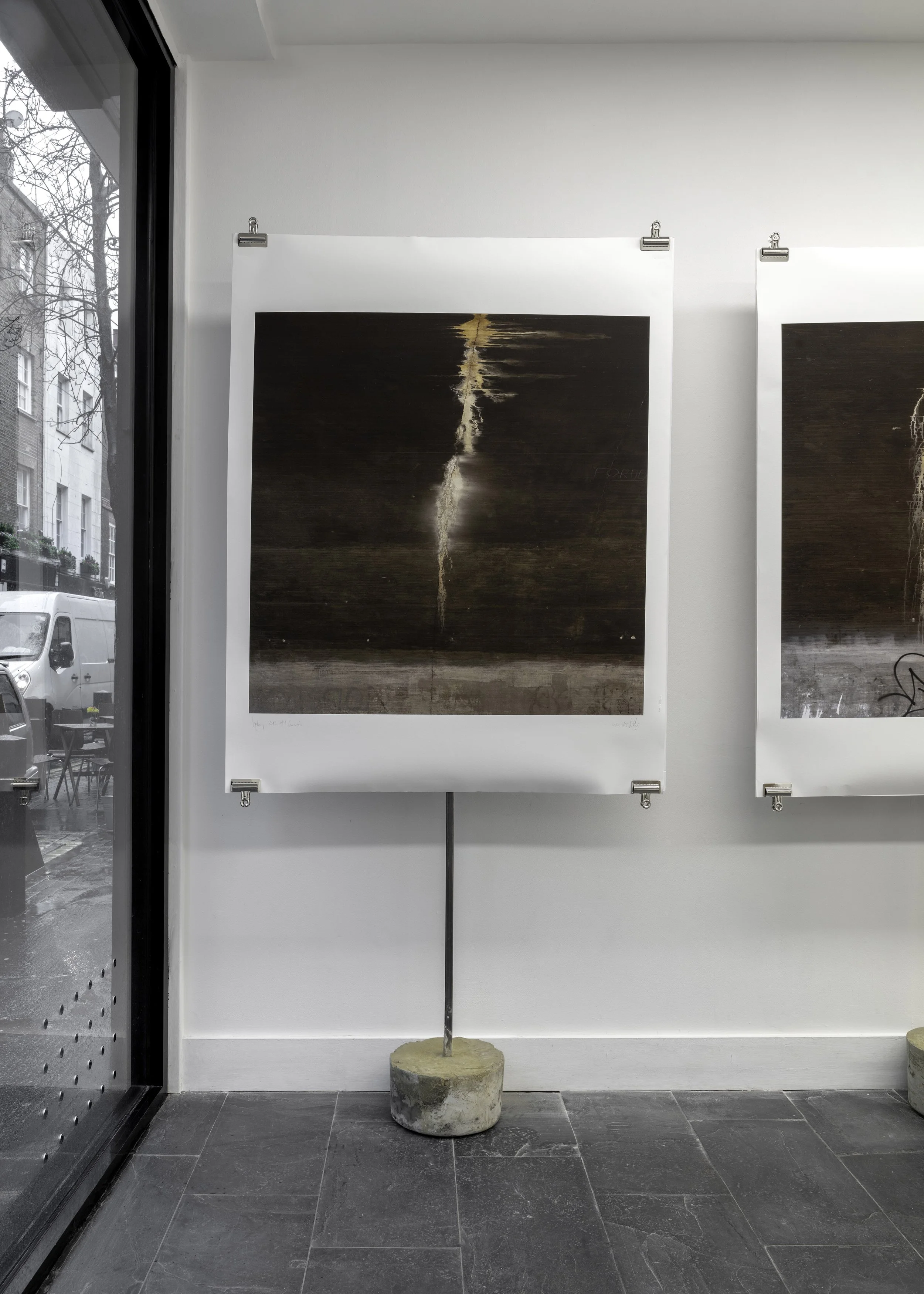 In his first solo London exhibition, Concrete (2020), photographer Juan Hitters (b. 1966, Buenos Aires) presents a selection of images produced in Australia in 2013. The exhibition is comprised of six 1 x 1 mphotographs and are all editions of fifteen, printed on cotton paper. The first one of the series, Concreto #1, was awarded the Gran Premio Adquisición (Grand Prize Acquisition) in the 103rd Salón Nacional de las Artes Visuales (Photography) in Argentina. The six artworks hint us to the location where the images were taken; a railway tunnel near the central station in Sydney - a place of anonymous transit and quotidian activities. The series is reminiscent of unfinished abstract paintings created by mineral deposits leaking through the structure’s cracks. For Hitters, buildings are like living organisms, and their ruptures are evidence of the impact of human encroachment on wildlife. He invites viewers to notice mundane fractures and the life that grows within them, through a seemingly impenetrable material such as concrete. Whatever the forces that contributed to these fractures, we see evidence that in the end, nature takes over.